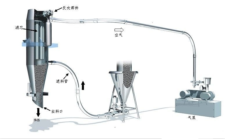 真空上料機(jī)是粉體輸送系統(tǒng)的真空輸送裝置,借助于真空發(fā)生源產(chǎn)生高真空形成的負(fù)壓氣流,輸送顆粒和粉末狀物料的設(shè)備。