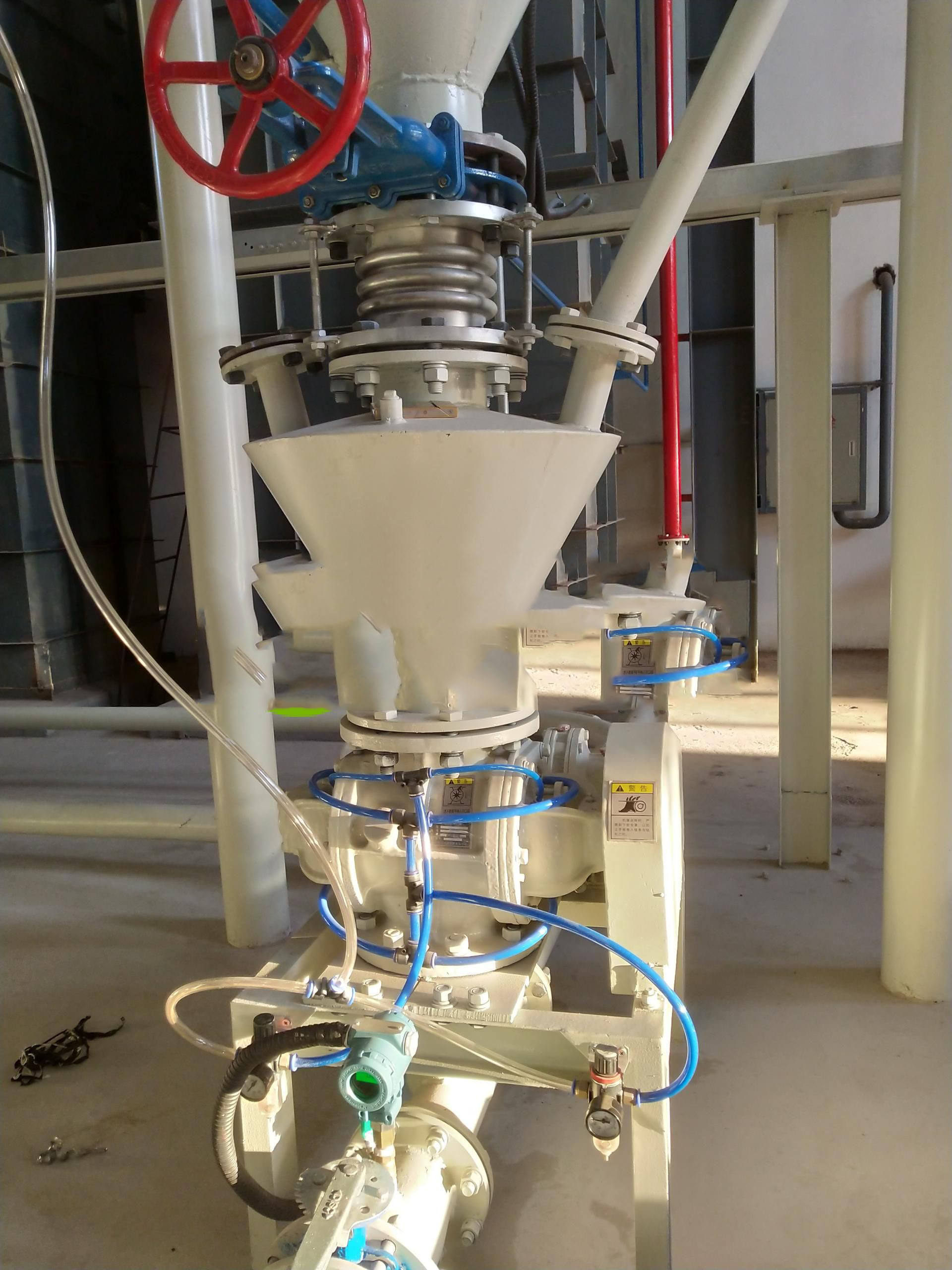 旋轉(zhuǎn)供料器的卸料量影響著氣力輸送的輸送量,在這個(gè)項(xiàng)目中我們甚至?xí)ㄟ^(guò)旋轉(zhuǎn)供料器的減容來(lái)達(dá)到減少輸送量。