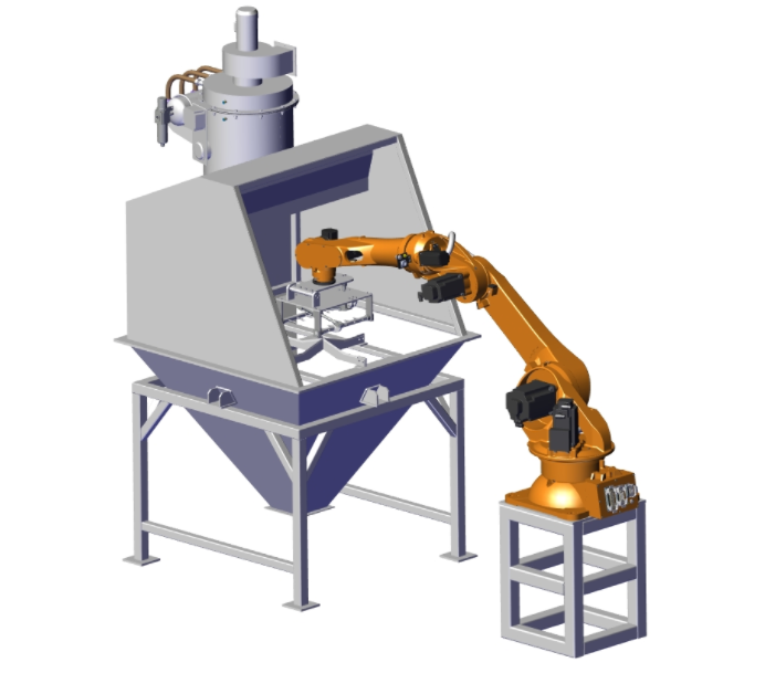 小袋無塵自動投料站設(shè)備適用于25kg-50kg小袋包裝的粉粒狀物料的無塵拆包卸料作業(yè)。本設(shè)備采用機(jī)械手進(jìn)行小袋抓包、提送、破袋、卸料。自身具備負(fù)壓集中吸塵及壓縮空氣脈沖反吹逆洗功能。