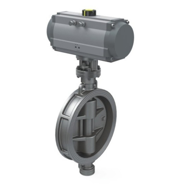 氣動(dòng)對(duì)夾式蝶閥,結(jié)構(gòu)新穎,閥體構(gòu)造為滿足管道空間狹窄而形成的短距離對(duì)夾式結(jié)構(gòu),外部零泄漏,內(nèi)部泄漏符合國(guó)家標(biāo)準(zhǔn)。