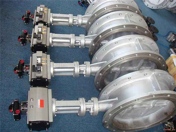 氣動(dòng)調(diào)節(jié)蝶閥是一種(閥板)繞垂直于通道的固定軸旋轉(zhuǎn)的閥門,其由活塞式雙作用或單作用(彈簧復(fù)位式)氣動(dòng)執(zhí)行器和蝶形閥組成,屬旋轉(zhuǎn)高性能型調(diào)節(jié)或切斷閥類,配用電,氣閥門定位器或電磁閥、空氣過(guò)濾減壓器、限位開(kāi)關(guān)(閥位回訊器),可實(shí)現(xiàn)對(duì)工藝管路中流體介質(zhì)的比例調(diào)節(jié)和二位切斷控制,從而達(dá)到對(duì)流體介質(zhì)的流量、壓力、溫度、液位等參數(shù)的自動(dòng)化控制。
